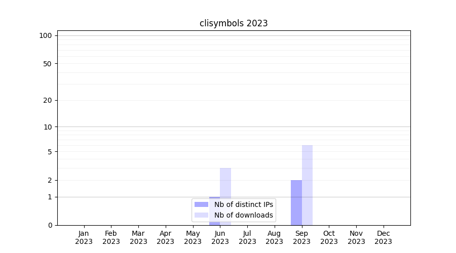 Number of downloads for experiment package clisymbols, year by year, from 2025 back to 2014 (years with no downloads are omitted):