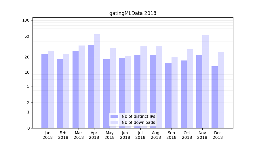 gatingMLData_2018_stats.tab| Month | Nb of distinct IPs | Nb of downloads |