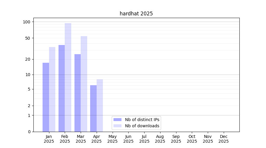 Number of downloads for experiment package hardhat, year by year, from 2025 back to 2014 (years with no downloads are omitted):