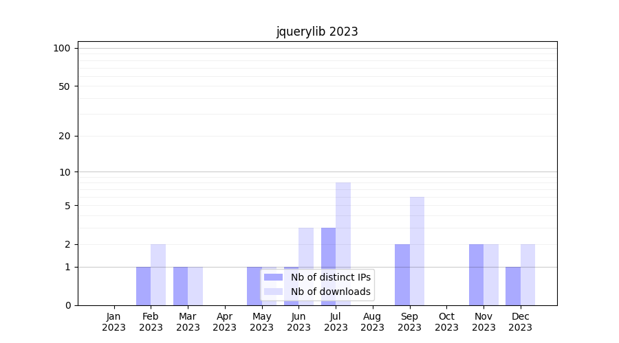 jquerylib_2023_stats.tab| Month | Nb of distinct IPs | Nb of downloads |