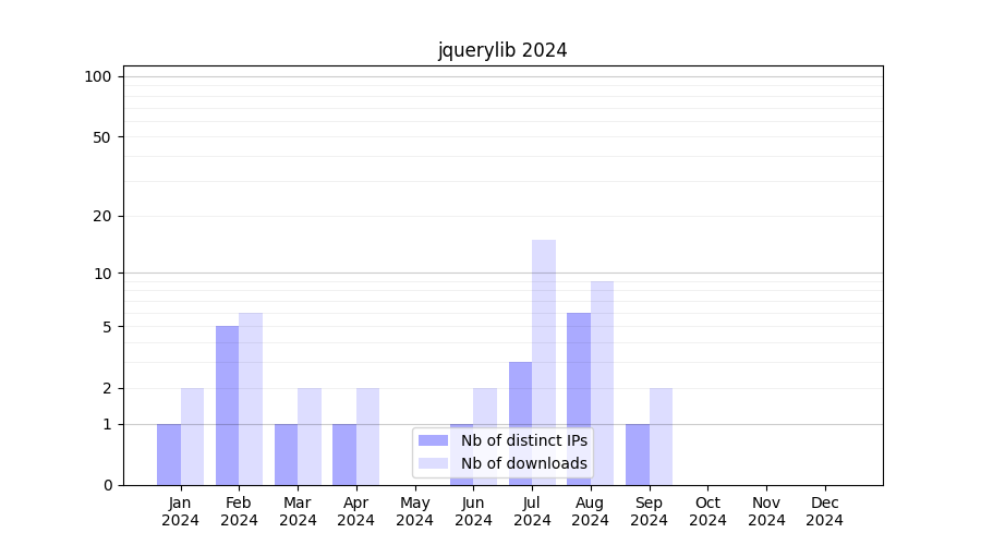 jquerylib_2024_stats.tab| Month | Nb of distinct IPs | Nb of downloads |