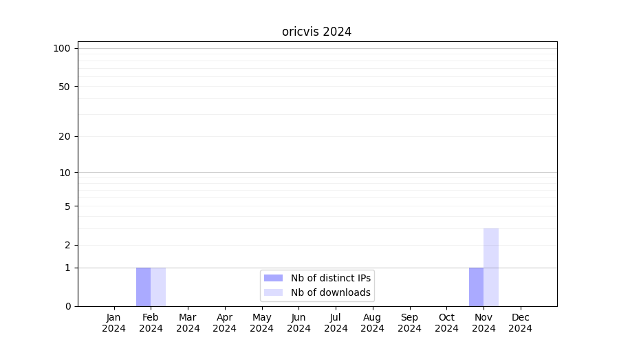 Number of downloads for experiment package oricvis, year by year, from 2025 back to 2014 (years with no downloads are omitted):