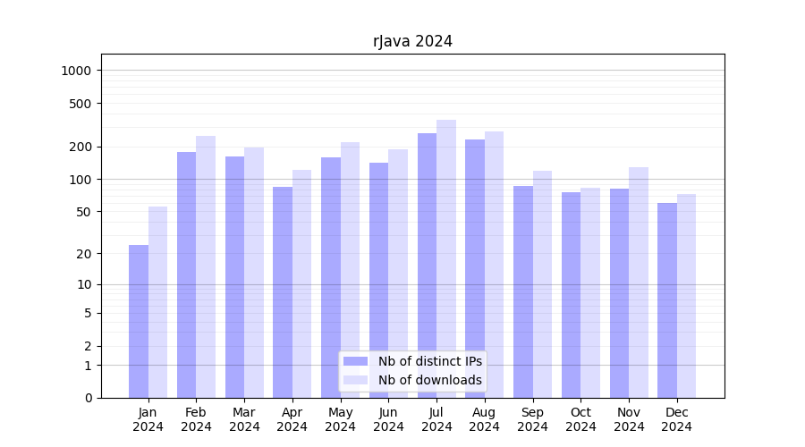 rJava_2024_stats.tab| Month | Nb of distinct IPs | Nb of downloads |