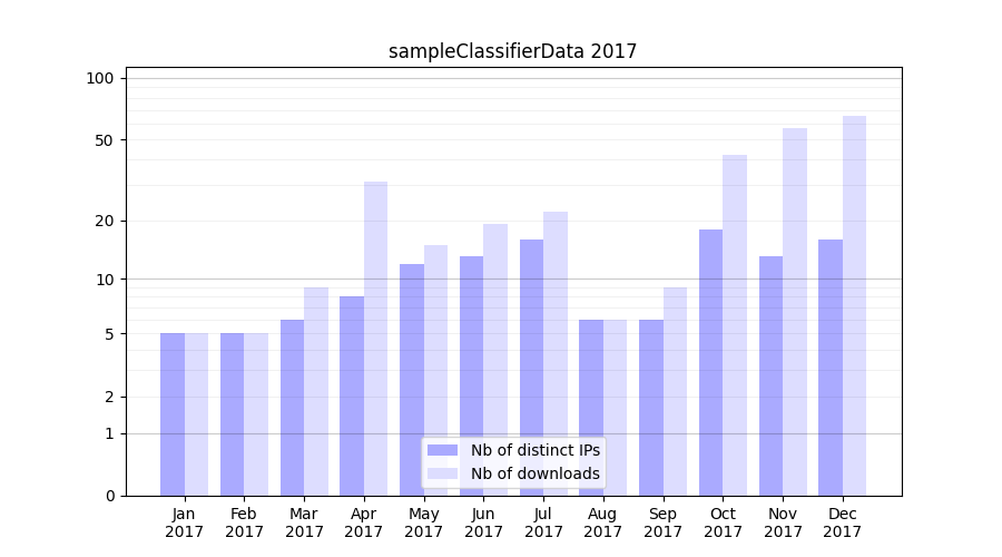 sampleClassifierData_2017_stats.tab| Month | Nb of distinct IPs | Nb of downloads |