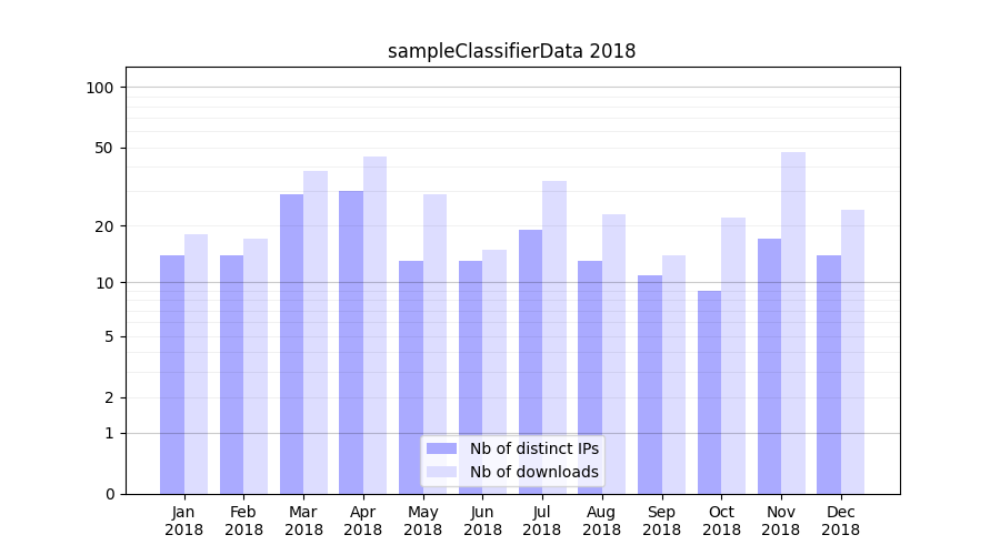 sampleClassifierData_2018_stats.tab| Month | Nb of distinct IPs | Nb of downloads |