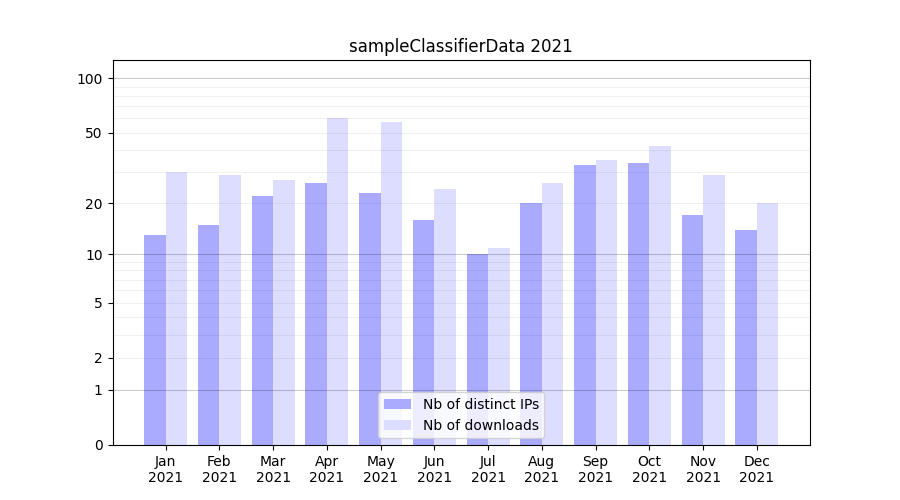 sampleClassifierData_2021_stats.tab| Month | Nb of distinct IPs | Nb of downloads |