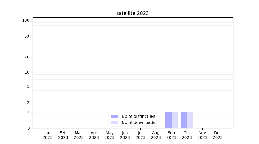 Number of downloads for experiment package satellite, year by year, from 2025 back to 2014 (years with no downloads are omitted):