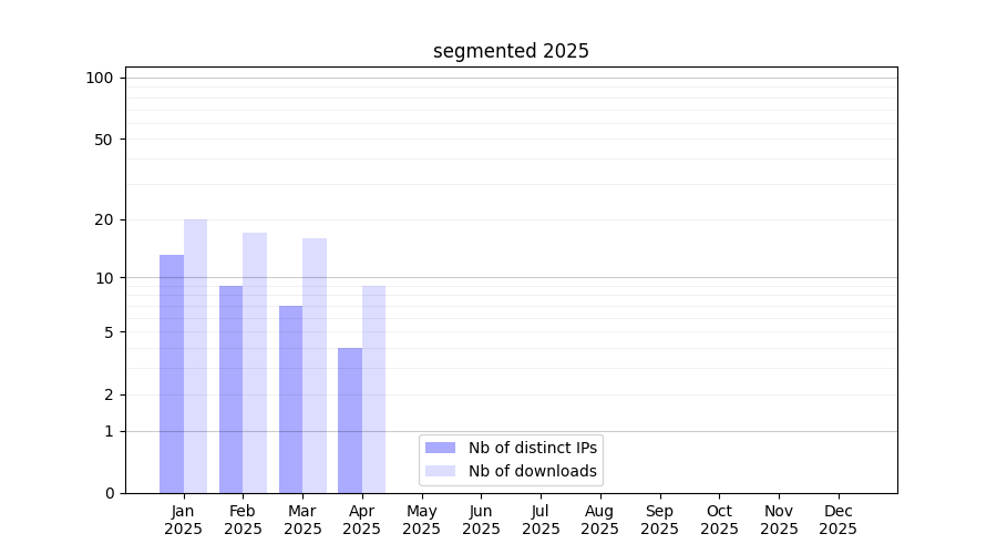 Number of downloads for experiment package segmented, year by year, from 2025 back to 2014 (years with no downloads are omitted):