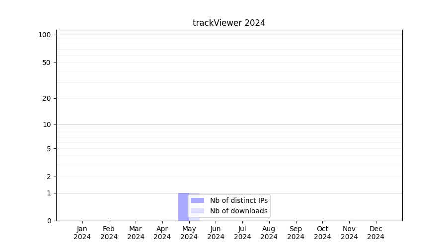Number of downloads for experiment package trackViewer, year by year, from 2025 back to 2014 (years with no downloads are omitted):