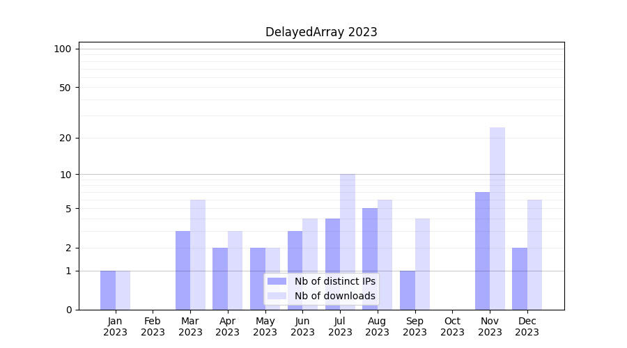 DelayedArray_2023_stats.tab| Month | Nb of distinct IPs | Nb of downloads |