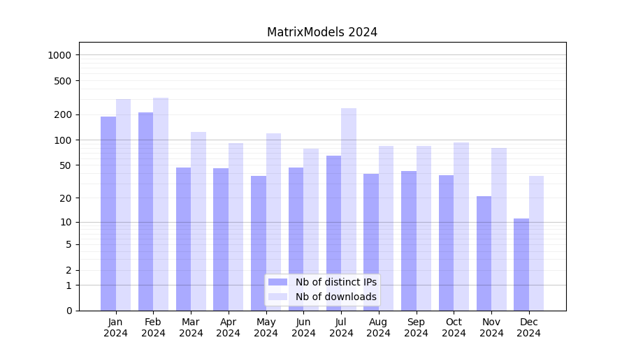 MatrixModels_2024_stats.tab| Month | Nb of distinct IPs | Nb of downloads |