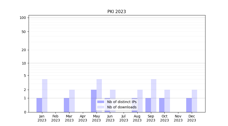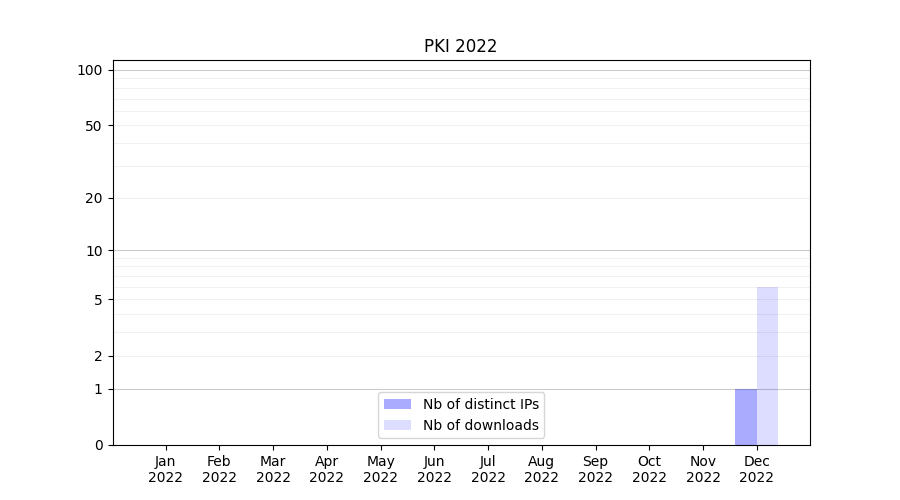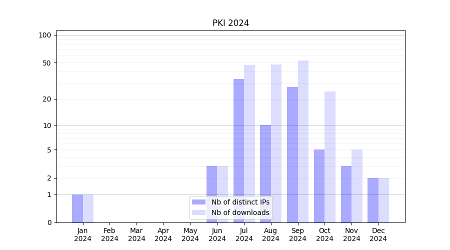 Number of downloads for workflow package PKI, year by year, from 2025 back to 2015 (years with no downloads are omitted):
