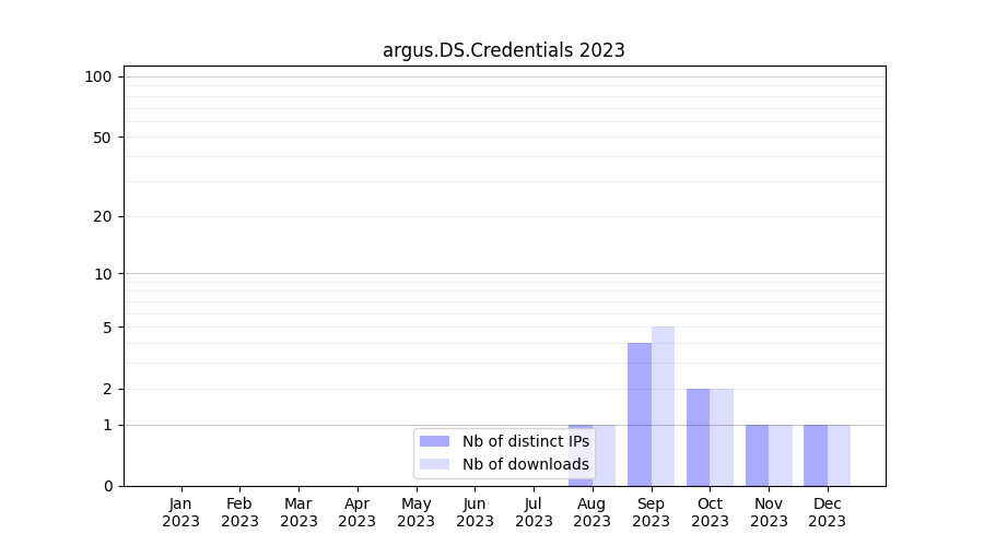 argus.DS.Credentials_2023_stats.tab| Month | Nb of distinct IPs | Nb of downloads |