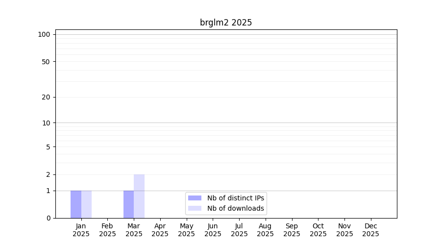 Number of downloads for workflow package brglm2, year by year, from 2025 back to 2015 (years with no downloads are omitted):