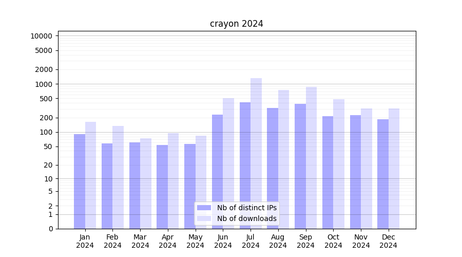 Number of downloads for workflow package crayon, year by year, from 2025 back to 2015 (years with no downloads are omitted):