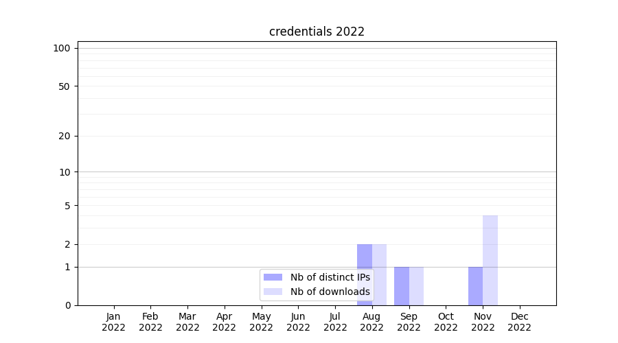 Number of downloads for workflow package credentials, year by year, from 2025 back to 2015 (years with no downloads are omitted):