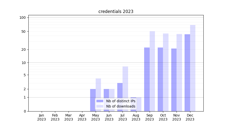 | Month | Nb of distinct IPs | Nb of downloads |