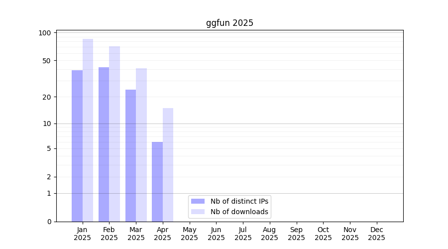 Number of downloads for workflow package ggfun, year by year, from 2025 back to 2015 (years with no downloads are omitted):
