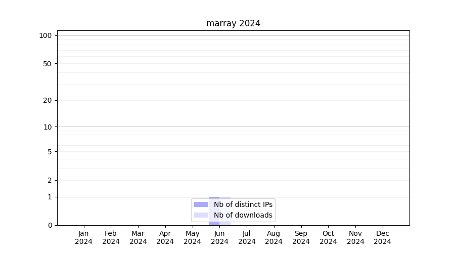Number of downloads for workflow package marray, year by year, from 2025 back to 2015 (years with no downloads are omitted):