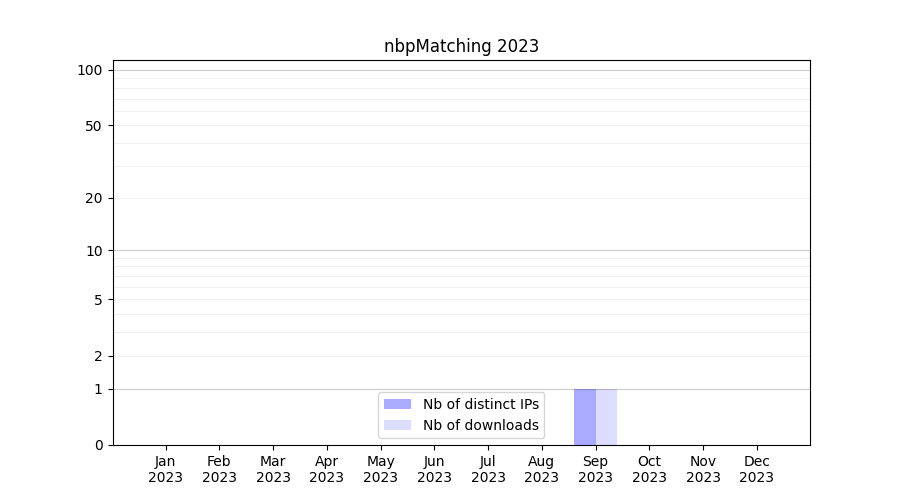 Number of downloads for workflow package nbpMatching, year by year, from 2025 back to 2015 (years with no downloads are omitted):