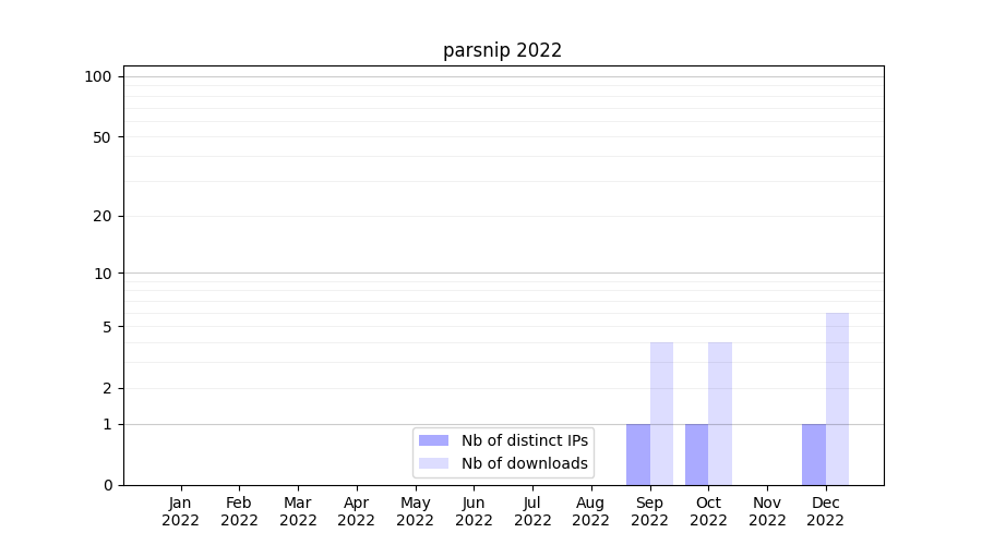 Number of downloads for workflow package parsnip, year by year, from 2025 back to 2015 (years with no downloads are omitted):