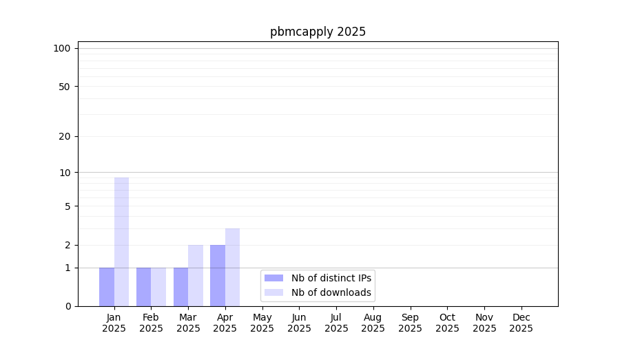 Number of downloads for workflow package pbmcapply, year by year, from 2025 back to 2015 (years with no downloads are omitted):