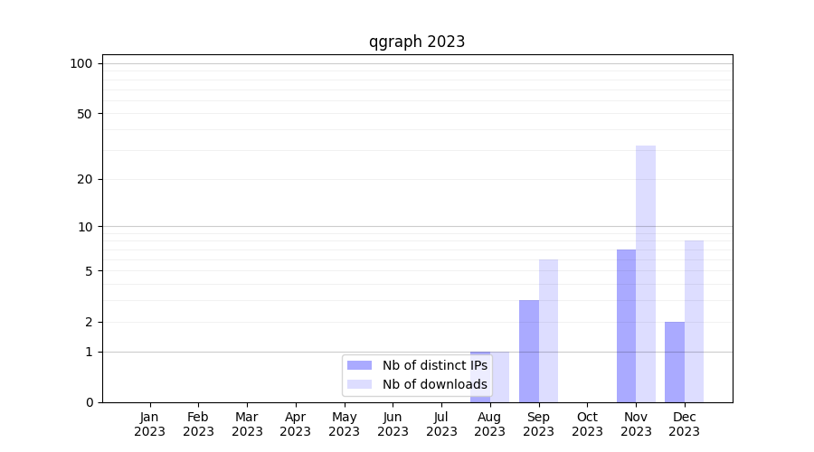 Number of downloads for workflow package qgraph, year by year, from 2025 back to 2015 (years with no downloads are omitted):