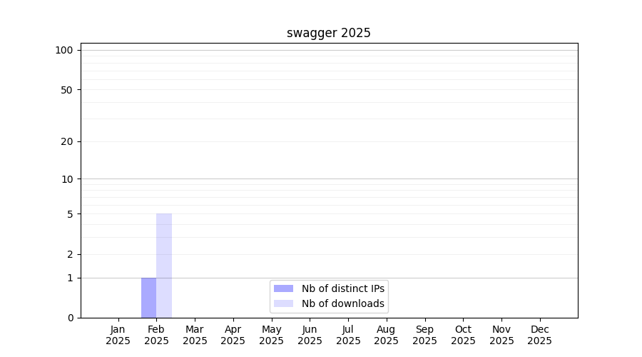 Number of downloads for workflow package swagger, year by year, from 2025 back to 2015 (years with no downloads are omitted):