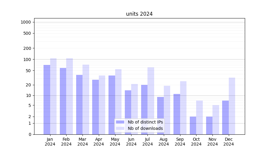 Number of downloads for workflow package units, year by year, from 2025 back to 2015 (years with no downloads are omitted):