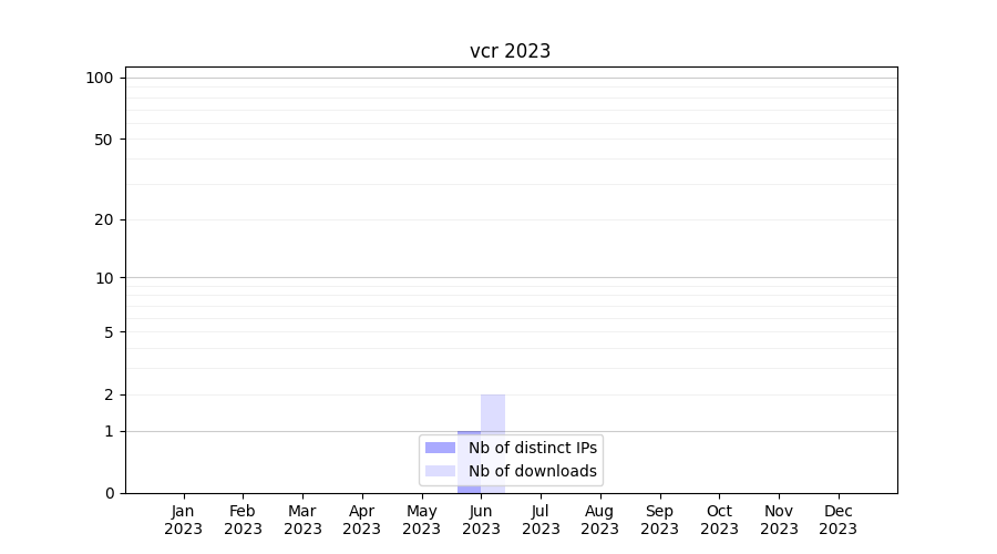 Number of downloads for workflow package vcr, year by year, from 2025 back to 2015 (years with no downloads are omitted):