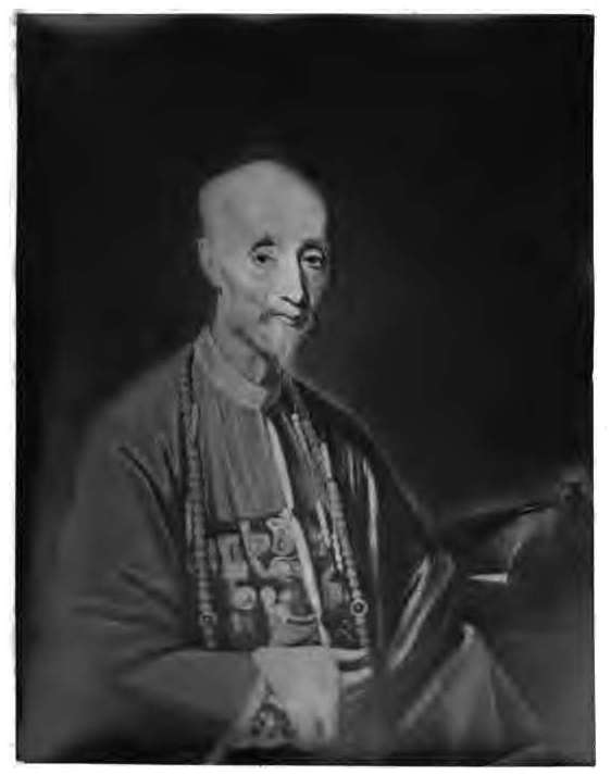 I was glad to have witnessed this sight, unique in that distant quarter of the world, to reach which the old adage would apply, 'it was not every one who could get to Corinth.' Soon after I landed at Canton, I had the honour of a first invitation to dine with the 'Factory' and must confess that at my then age I accepted it with fear and trepidation. One of the invité from the Suy-Hong, Mr. Oliver H. Gordon, accompanied me. Our way led through the great outer gate, past the 'chapel' whose spire bore conspicuously a large clock, the only one in Canton, and by which everyone regulated his watch; then up a broad flight of stone steps to a verandah, crossing which one entered the library and reception room as well. When the hosts and the[32] guests had assembled, large folding doors were opened and we entered the noble dining-room, whose brilliancy and cheerfulness and gorgeously furnished table I see now. At the remote end of the room were grouped the Chinese servants of the Factory and of the guests, in caps and long robes, who immediately took up their places behind their respective masters as soon as seated.
