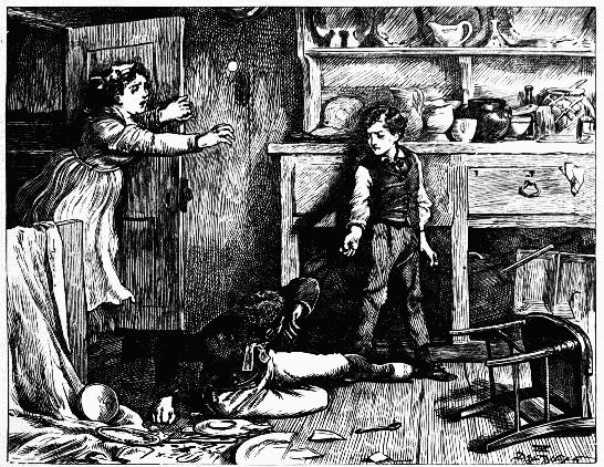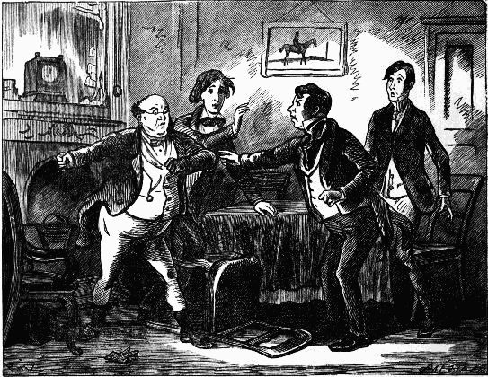 suddenly forcing the unfortunate Trott back into his chair, and brandishing