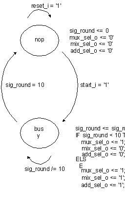 The Control block controls the Key Expander and Rijndael Alg block. The state diagram of Control block is depicted in figure 4.